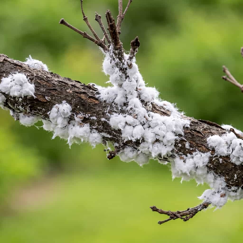 Instead of looking like insects, they appear as white, cotton-like clusters attached to branches. Many homeowners assume this is a fungal issue.
